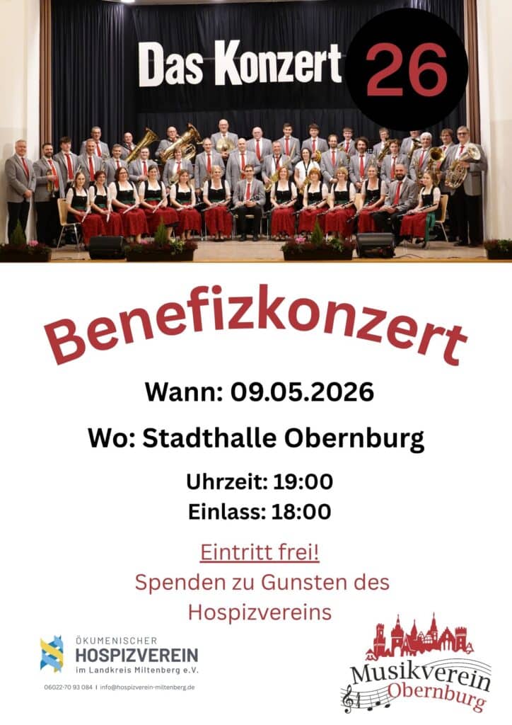 Der Musikverein Obernburg und der Ökumenische Hospizverein freuen sich auf zahlreiche Gäste und einen besonderen Abend im Zeichen von Musik, Gemeinschaft und Unterstützung für den guten Zweck.